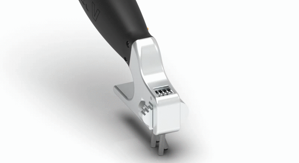 Our final product, the MAXV, features gear controlled adjustable diamond teeth and an extendable bastard file. Featuring the same simple but robust mechanism used in adjustable crescent wrenches, the worm gear that adjusts the angle of the teeth prevents back-driving, so the angle stays fixed without the need of an additional lock.